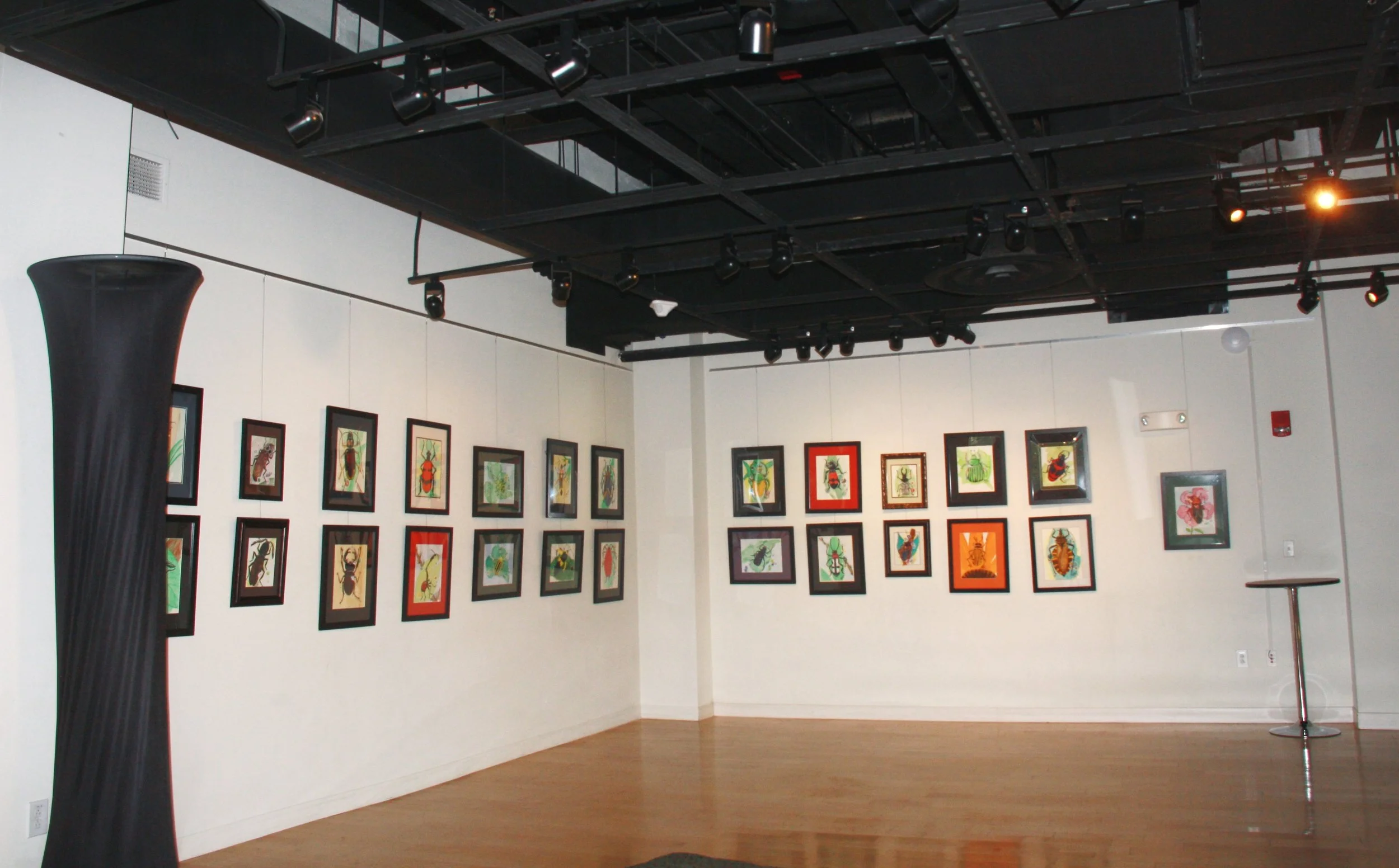 "My Love of Beetles and Bugs" was an interactive event featuring the work of Marjorie Guisao-Wallace. The gallery was transformed into an educational and kid-friendly museum. In conjunction with the over 100 original watercolors of actual beetles and bugs from around the world, the exhibit contained floor sequencing puzzles, coloring tables, photo ops, a table of microscopes to examine insect parts, and more. We were even able to take this exhibit to the 2017 Fall Festival, as shown below.